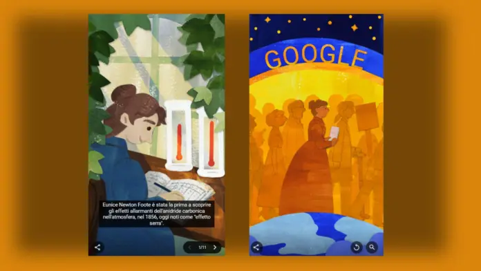 In occasione dei 204 anni dalla sua nascita, Google, come sempre fa in presenza di grandi personalità della storia che ci hanno aiutato ad allargare le nostre conoscenze, dedica un doodle a Eunice Newton Foote, realizzato dall’artista Margaret Turok.