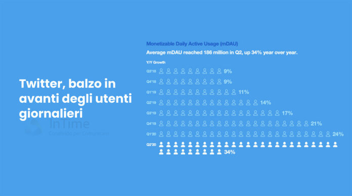 I dati relativi al secondo trimestre del 2020 sono per Twitter contrastanti. Da un lato si registra un balzo degli utenti giornalieri “monetizzabili”, +34% in un anno. Dall’altro si registra un calo dei ricavi del 23%.
