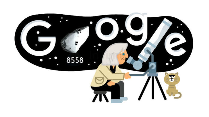 Il doodle vede l’astrofisica toscana intenta ad osservare gli astri, con la prima “O” a forma di asteroide. Si tratta dell'”Asteroide 8558 Hack“, scoperto nel 1995 e dedicato alla Hack.